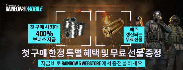 R6M Web Store에서만 레인보우 식스 모바일 최고의 충전 혜택을 만나보세요