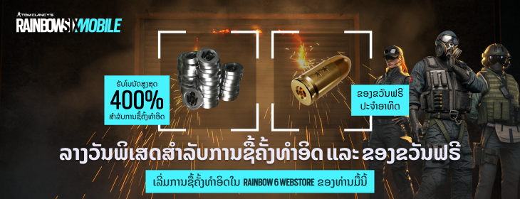 ຄົ້ນພົບຂໍ້ສະເໜີເຕີມເງິນ Rainbow Six Mobile ທີ່ດີທີ່ສຸດໄດ້ພຽງແຕ່ໃນ R6M Web Store